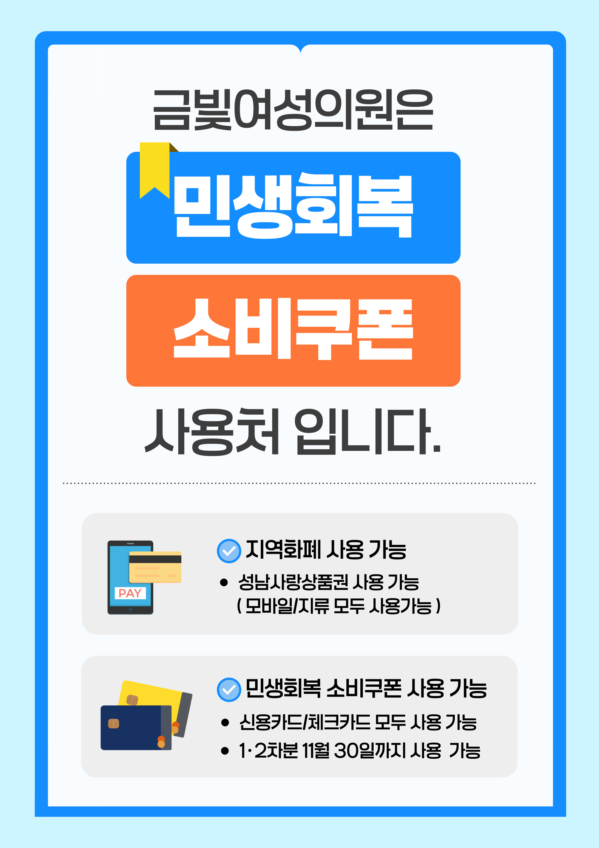 - 성남사랑상품권(모바일 / 지류) 모두 사용 가능합니다.