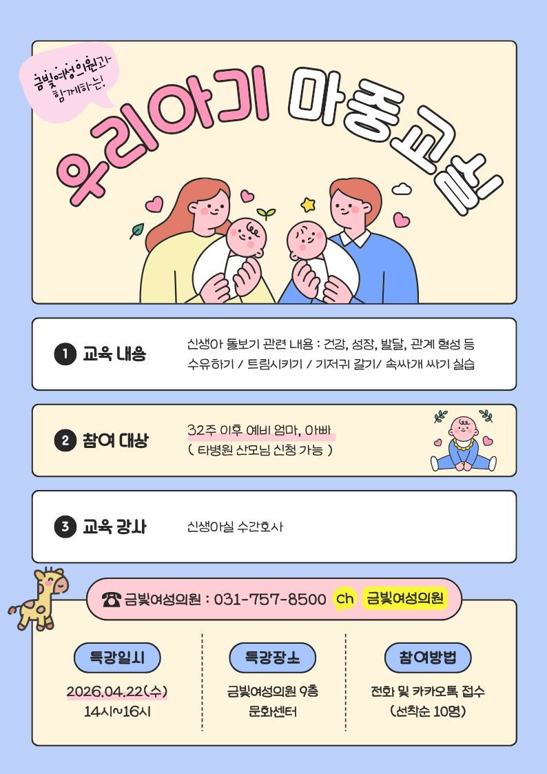 출산을 앞둔 예비 부모님들의 많은 관심과 참여 부탁드립니다.
